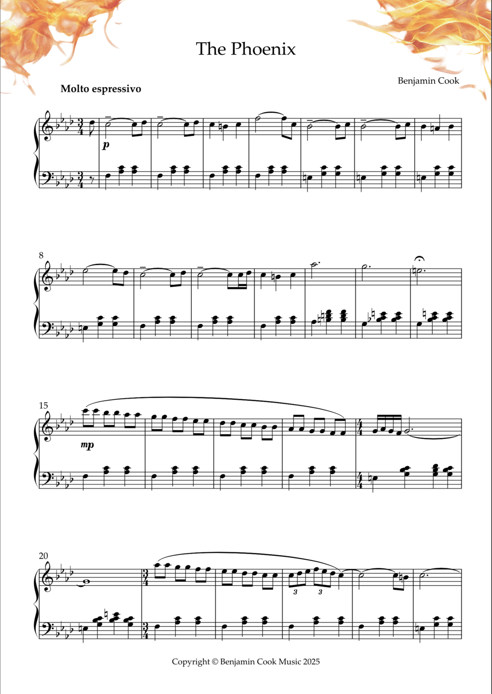 Illustrated sheet music for The Phoenix by Benjamin Cook